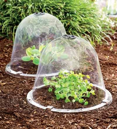 Establish vegetation earlier than ever with bell cloche protection. Soil is warmed while plants stay safe from weather/pests/wildlife. Clear, curved surface provides minimum reflection/maximum light penetration. UV-stabilized polystyrene construction. Adjustable vent. Stack for easy storage.