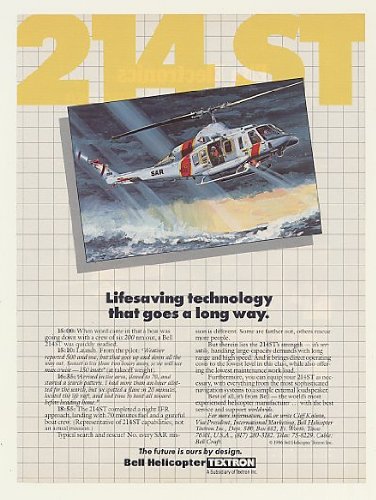 1986 Bell 214ST SAR Search and Rescue Helicopter Print Ad (43002) Review