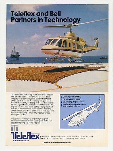 1982 Bell 214ST Helicopter Teleflex Color Photo Print Ad Review