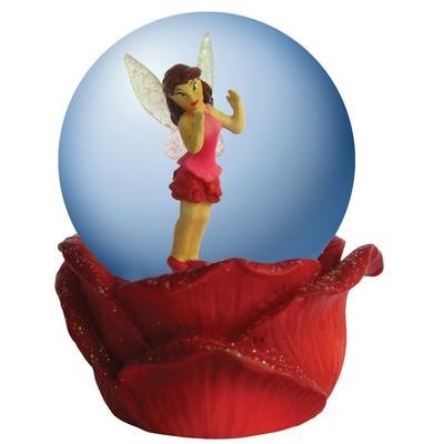 From the Disney Life According to Tinkerbell Collection. Rosetta Mini Waterglobe. Sits on a glitter red base shaped as a rose. The glass globe itself measures 1.75" (45 mm). Made of resin.