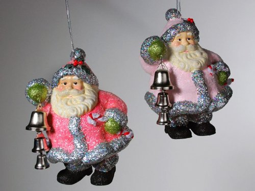 Sparkle Santa with Bells Dangle Christmas Ornaments set of 2 Review